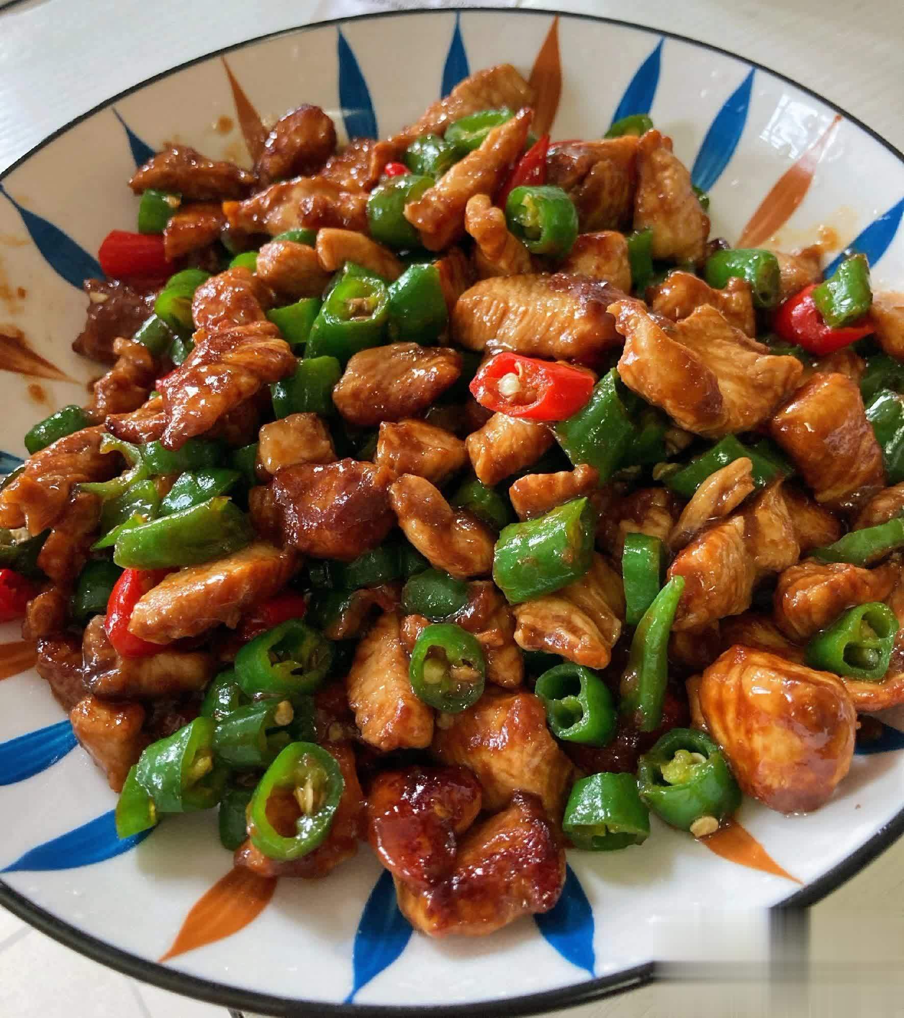 加青红椒大火炒到断生,加蚝油、糖和盐调味,翻炒均匀出锅。嫩滑的秘诀在腌制!
