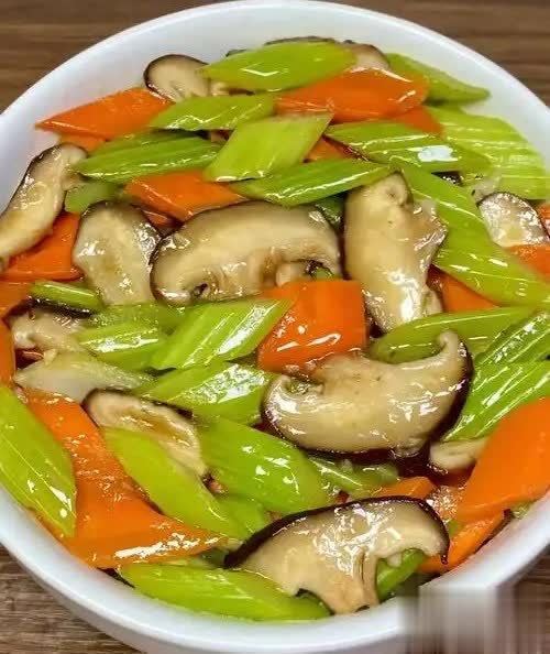 芹菜胡萝卜炒香菇材料:芹菜:1把(约200克);胡萝卜:1根;香菇:8朵(新鲜的);蒜末:适量;姜末:适量;生抽:适量;料酒:适量;盐:适量;白胡椒粉:适量;食用油
