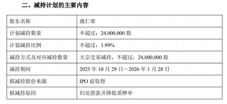 据公告,虞仁荣目前持有公司股份333,472,250股,占公司目前总股本的27.65%。虞仁荣所持上述股份来源于公司首次公开发行股票前已取得的股份。